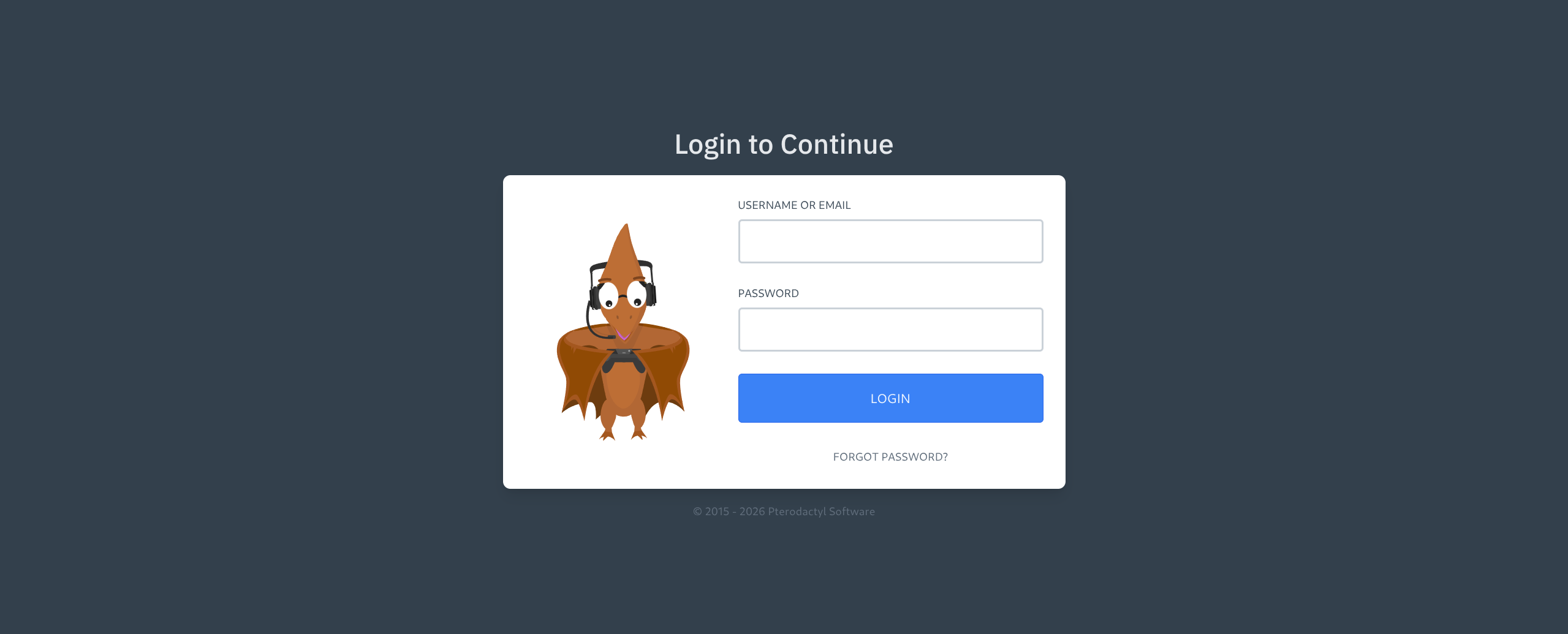 $ echo "$IP panel.pterodactyl.htb" | sudo tee -a /etc/hosts- Visiting reveals login panel for Pterodactyl