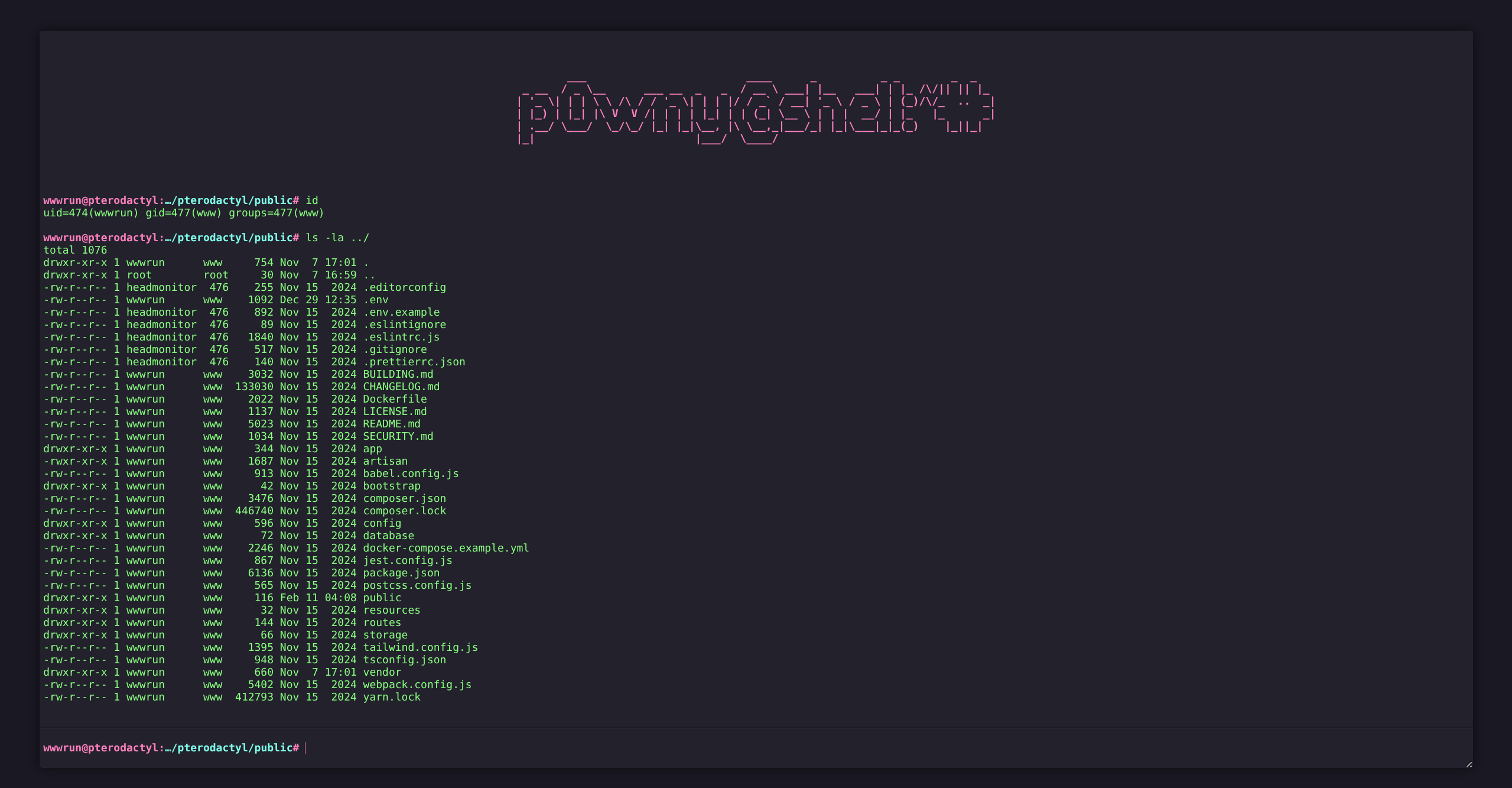wwwrun@pterodactyl:…/pterodactyl/public$ cat ../.env