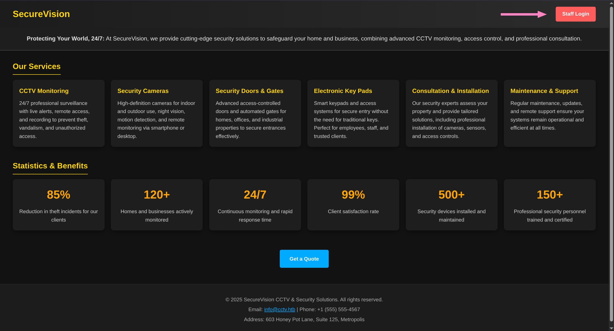 Webpage contains link to staff login portal