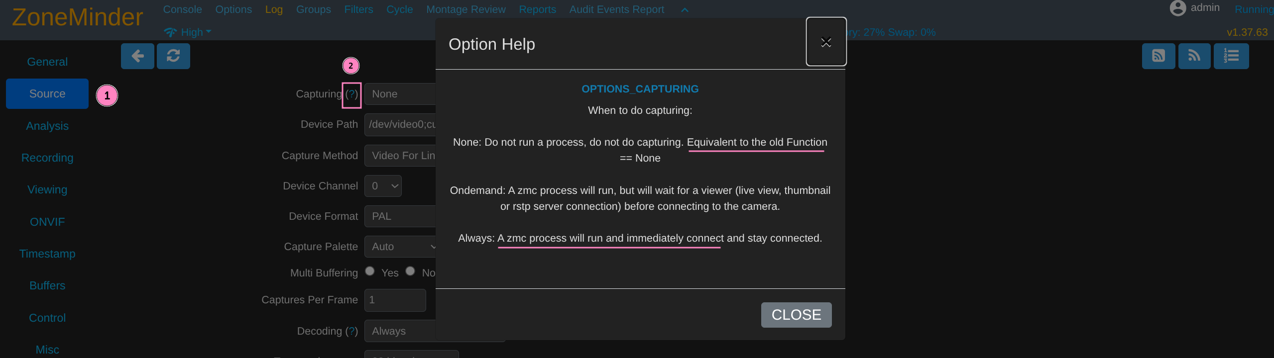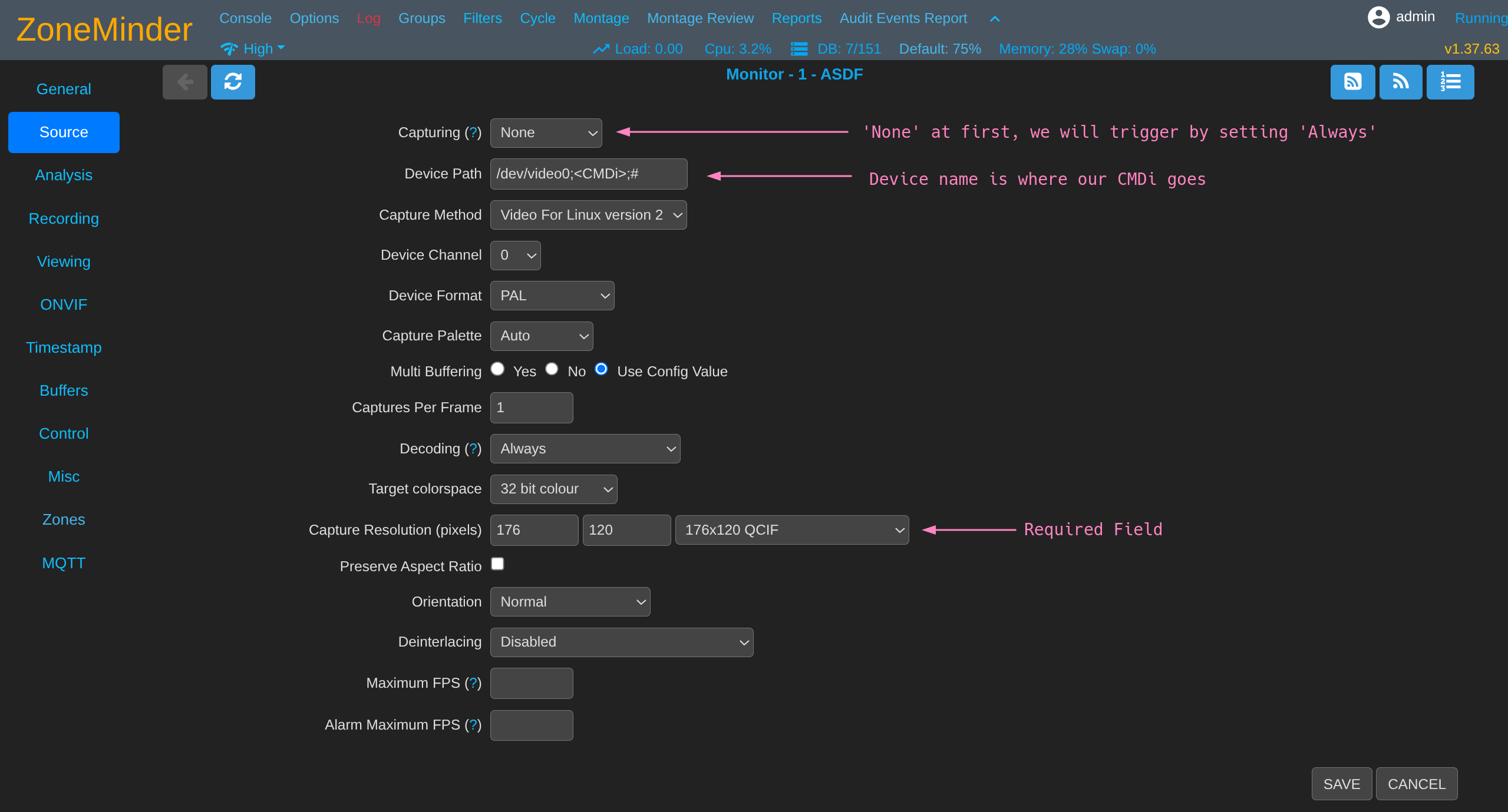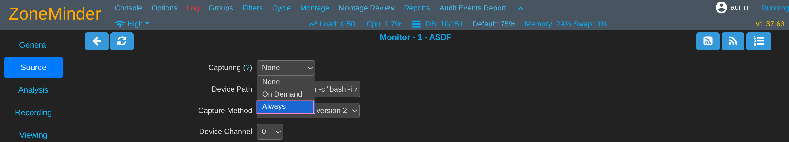 Trigger zmc by setting Capturing field to Always and saving