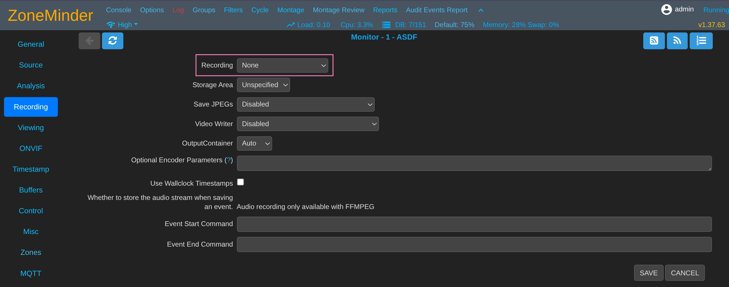 # ZoneMinder database type: so far only mysql is supported