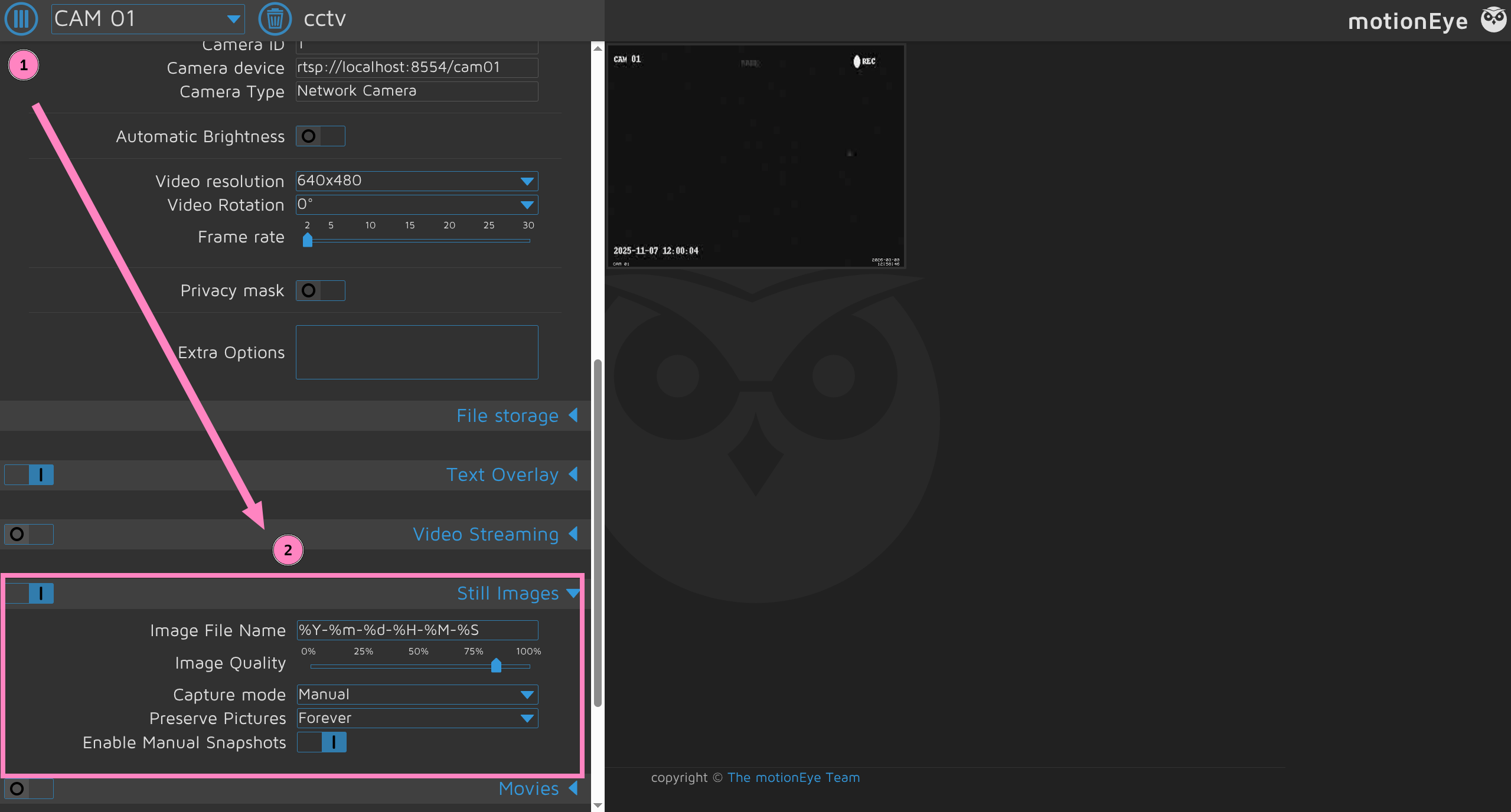 And a webpage for MotionEye 0.43.1b4
