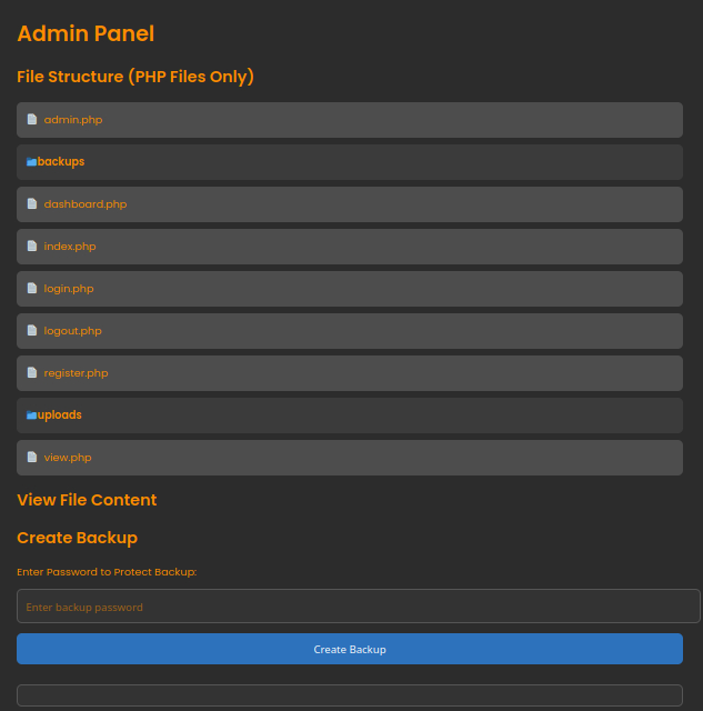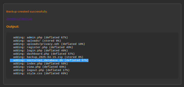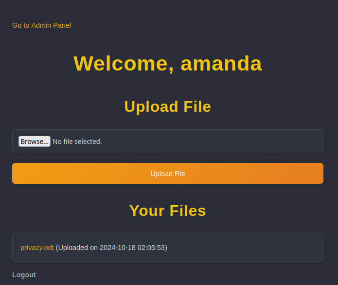 sqlite> .dumpPRAGMA foreign_keys=OFF;BEGIN TRANSACTION;CREATE TABLE users ( id INTEGER PRIMARY KEY AUTOINCREMENT, username TEXT NOT NULL UNIQUE, password TEXT NOT NULL);INSERT INTO users VALUES(1,'admin','d725aeba143f575736b07e045d8ceebb');INSERT INTO users VALUES(2,'amanda','df8b20aa0c935023f99ea58358fb63c4');INSERT INTO users VALUES(4,'tobias','55c82b1ccd55ab219b3b109b07d5061d');INSERT INTO users VALUES(6,'asdf','912ec803b2ce49e4a541068d495ab570');CREATE TABLE uploads ( id INTEGER PRIMARY KEY AUTOINCREMENT, user_id INTEGER NOT NULL, file_name TEXT NOT NULL, upload_time DATETIME DEFAULT CURRENT_TIMESTAMP, FOREIGN KEY(user_id) REFERENCES users(id));INSERT INTO uploads VALUES(4,2,'privacy.odt','2024-10-18 02:05:53');INSERT INTO uploads VALUES(5,6,'test.pdf','2025-04-15 17:29:29');INSERT INTO uploads VALUES(6,6,'test.pdf','2025-04-15 17:36:46');DELETE FROM sqlite_sequence;INSERT INTO sqlite_sequence VALUES('users',6);INSERT INTO sqlite_sequence VALUES('uploads',6);COMMIT;sqlite> .exit