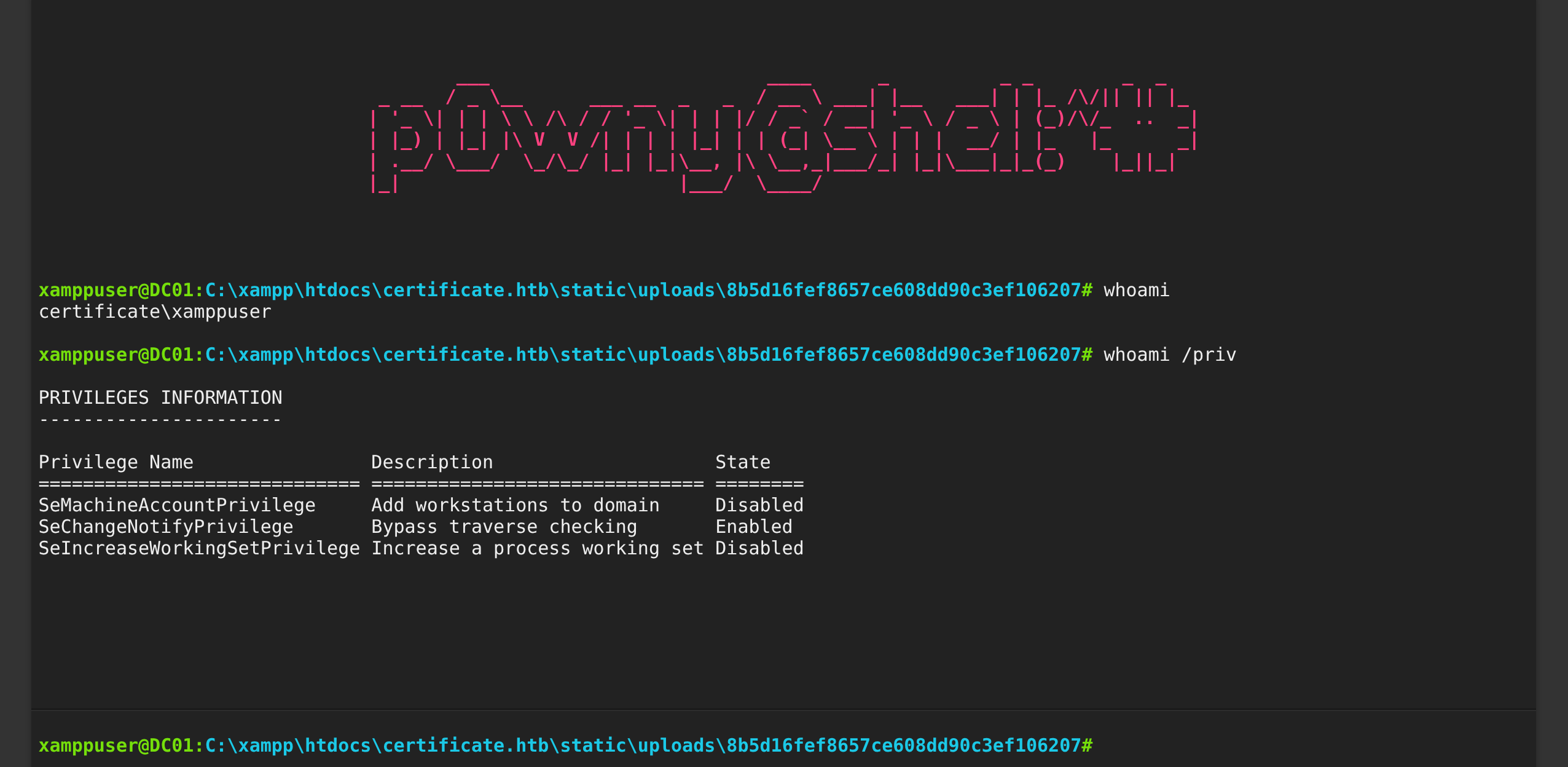 [*] SAN DNS Host Name: 'DC01.certificate.htb'