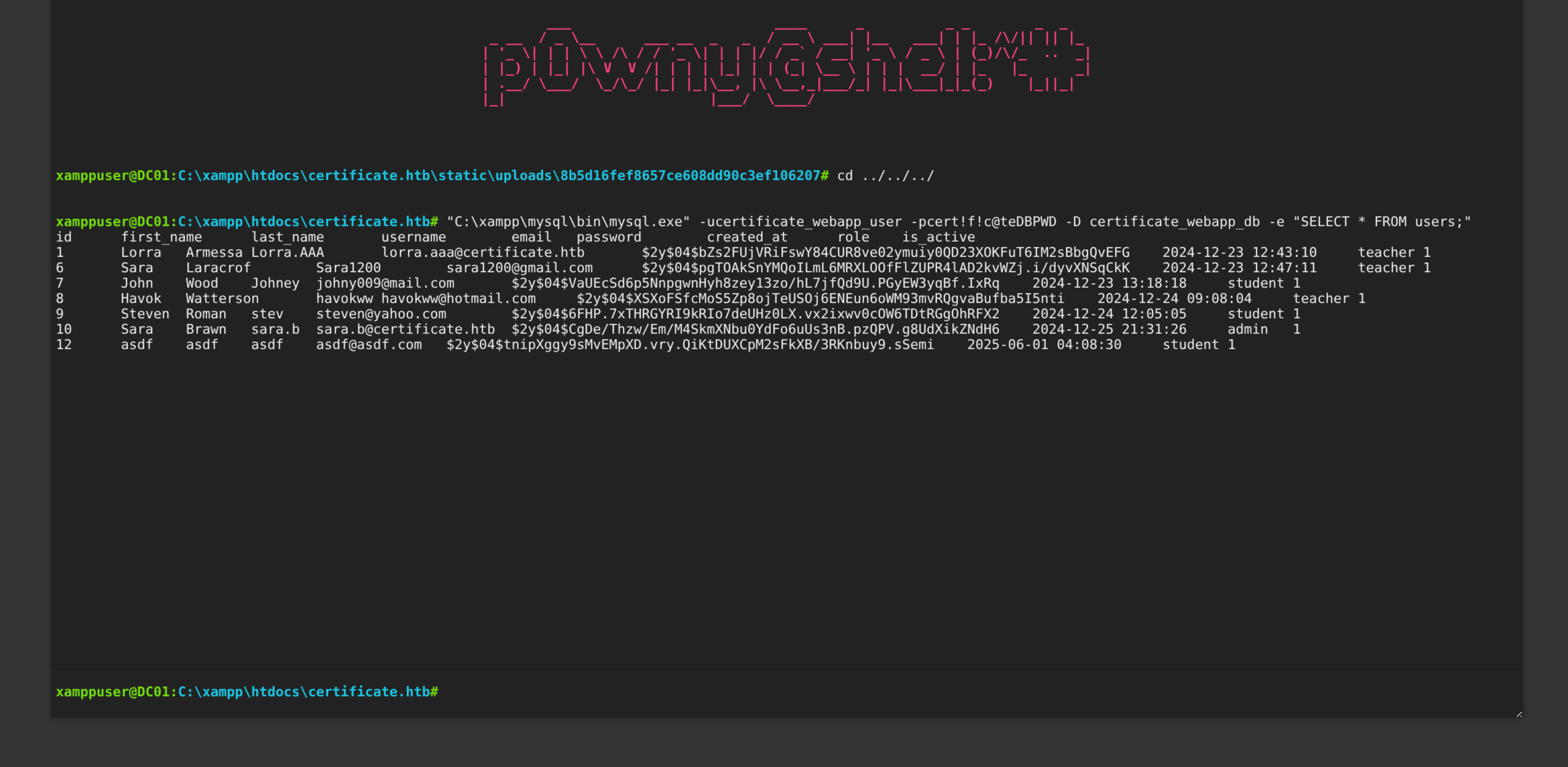 certificate.htb\akeder.kh:1119:aad3b435b51404eeaad3b435b51404ee:9ca9ba1e46bd75574002b8b1967bb2de:::
