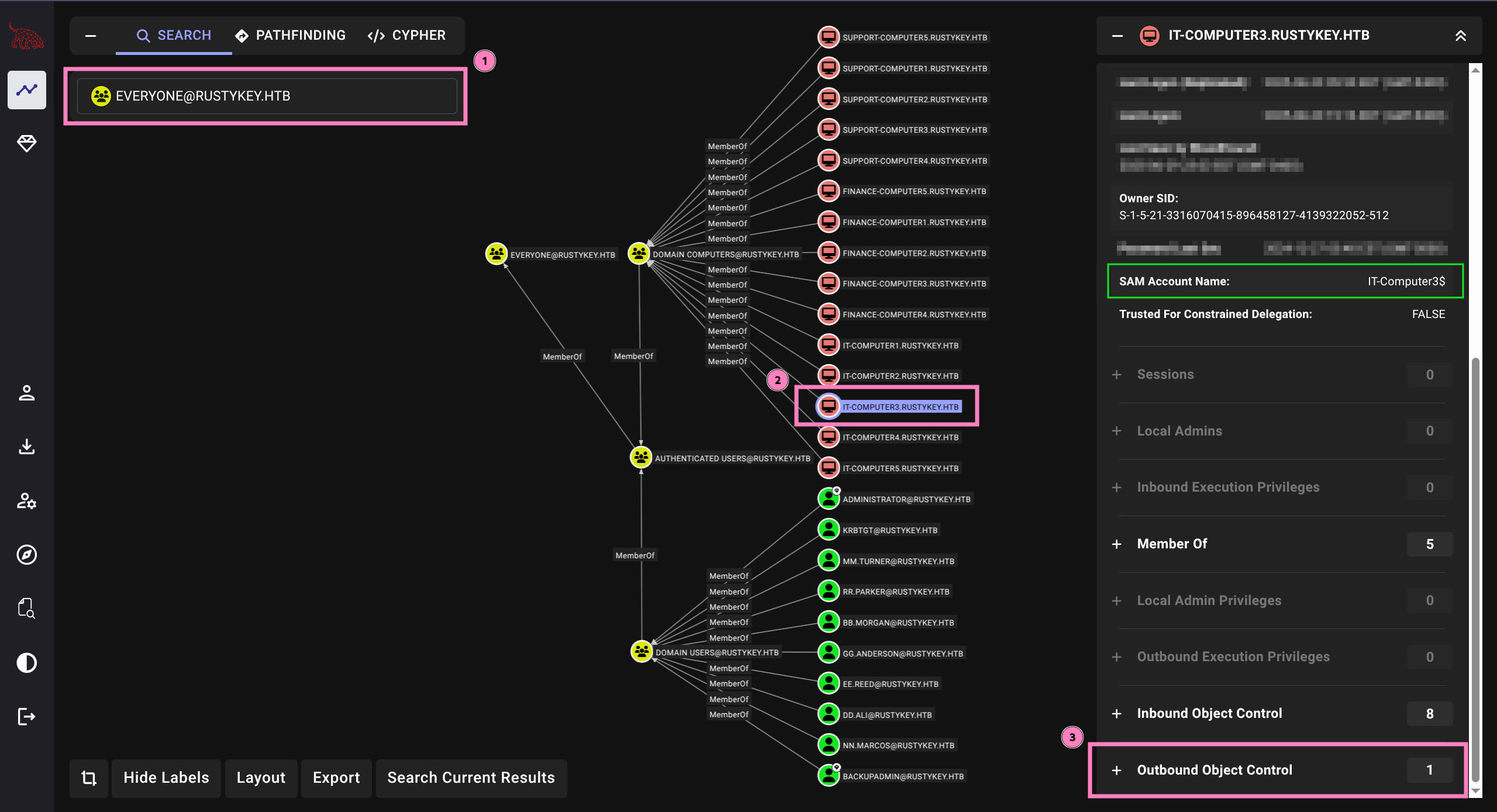 SMB dc.rustykey.htb 445 dc 1105: RUSTYKEY\Support-Computer3$ (SidTypeUser)