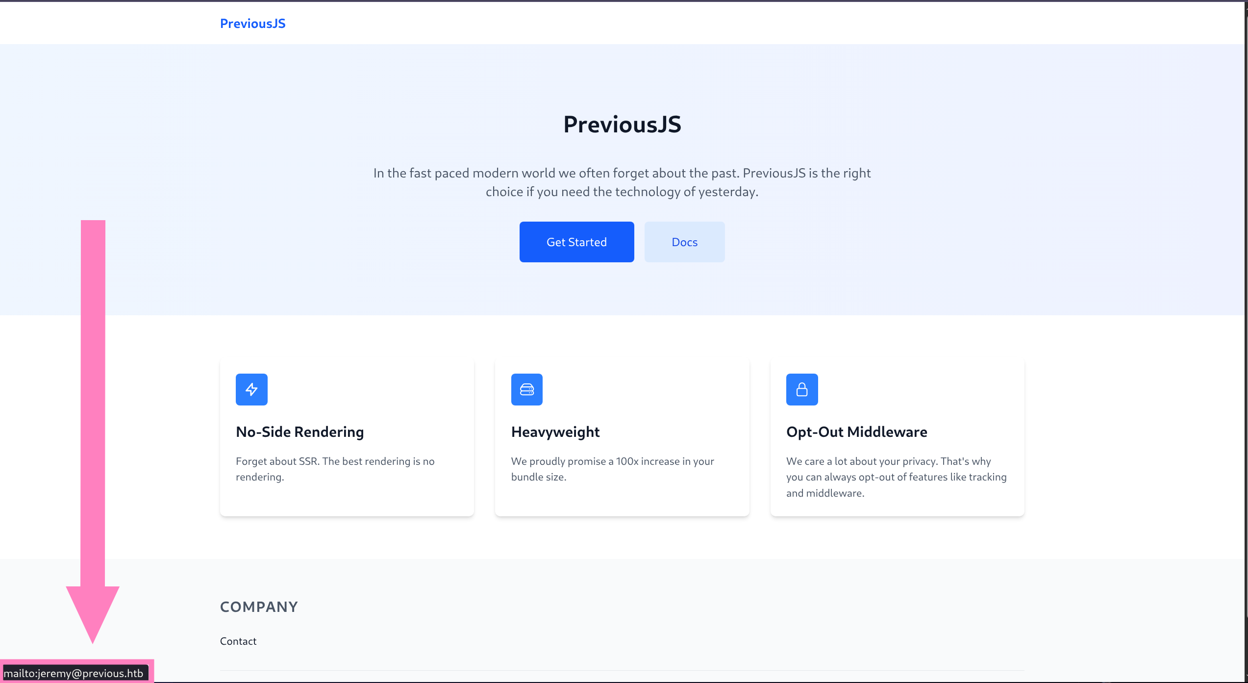 $ echo "$IP previous.htb" | sudo tee -a /etc/hosts- Main webpage - http://previous.htb