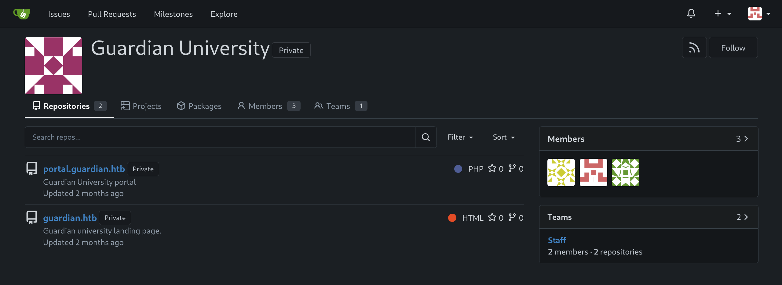 gitea.guardian.htbto/etc/hosts(a fair assumption) - Login to Gitea