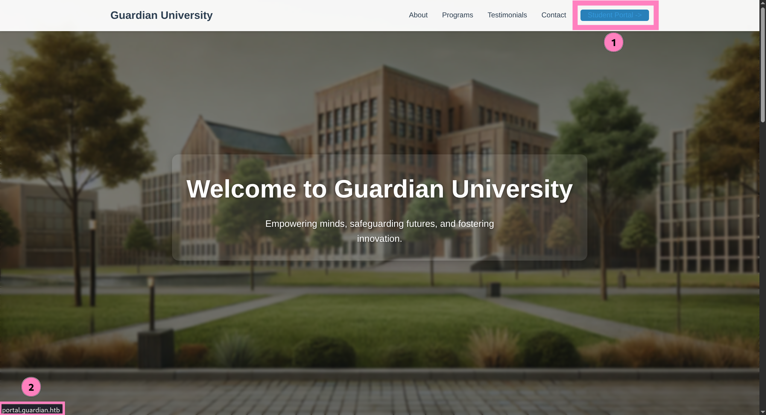 $ echo "$IP guardian.htb" | sudo tee -a /etc/hosts- Open webpage