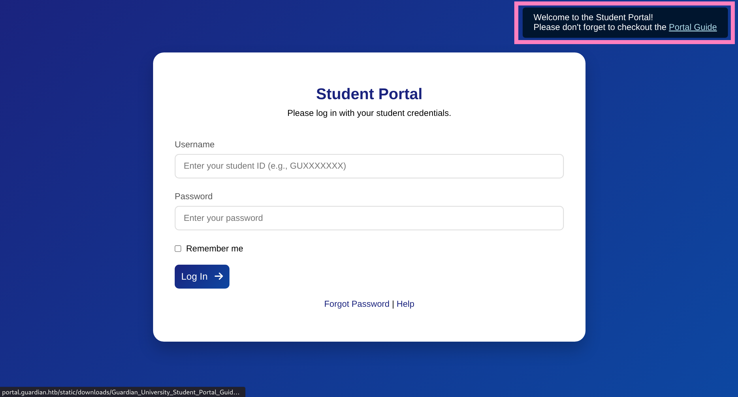 [80][http-post-form] host: portal.guardian.htb login: GU0142023 password: GU1234Student ID Login