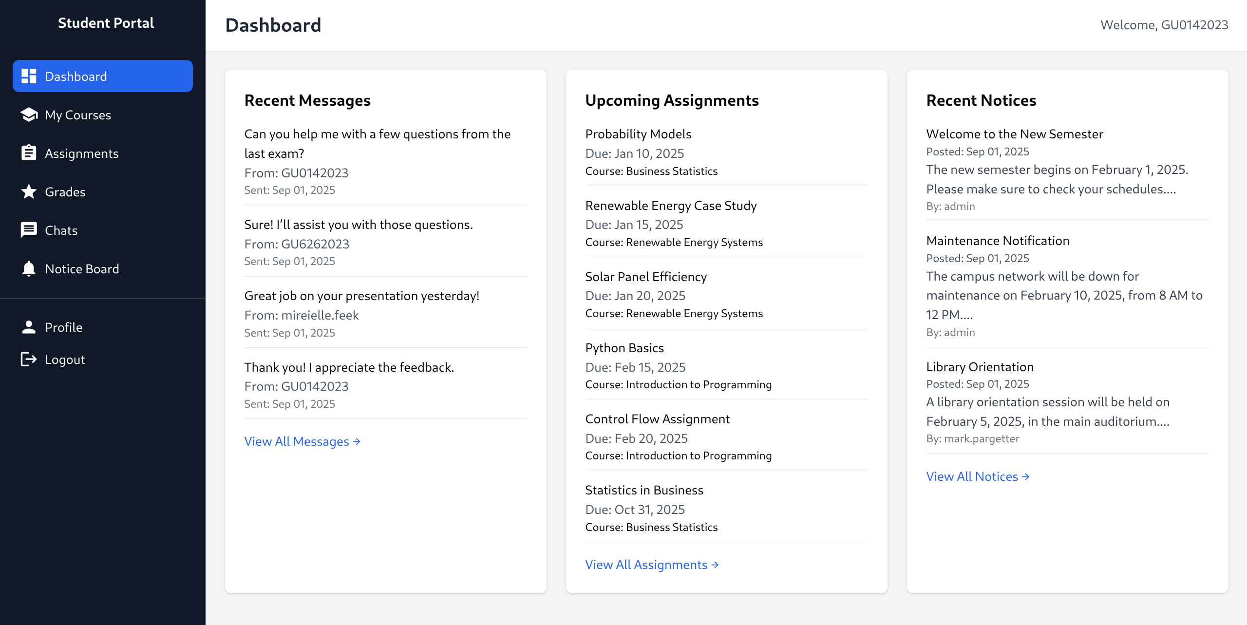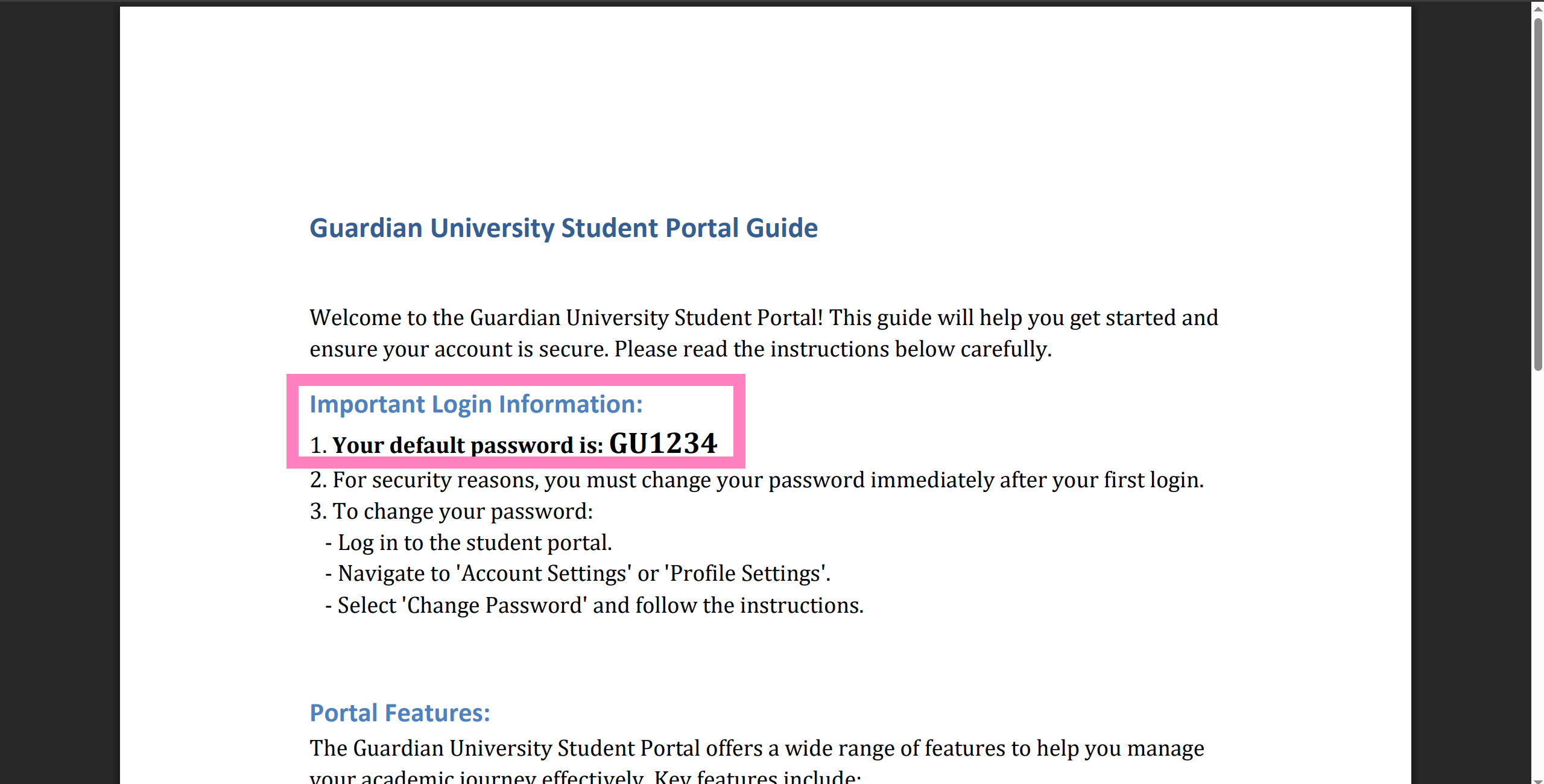 - We now can assume Student ID formatting and a default password