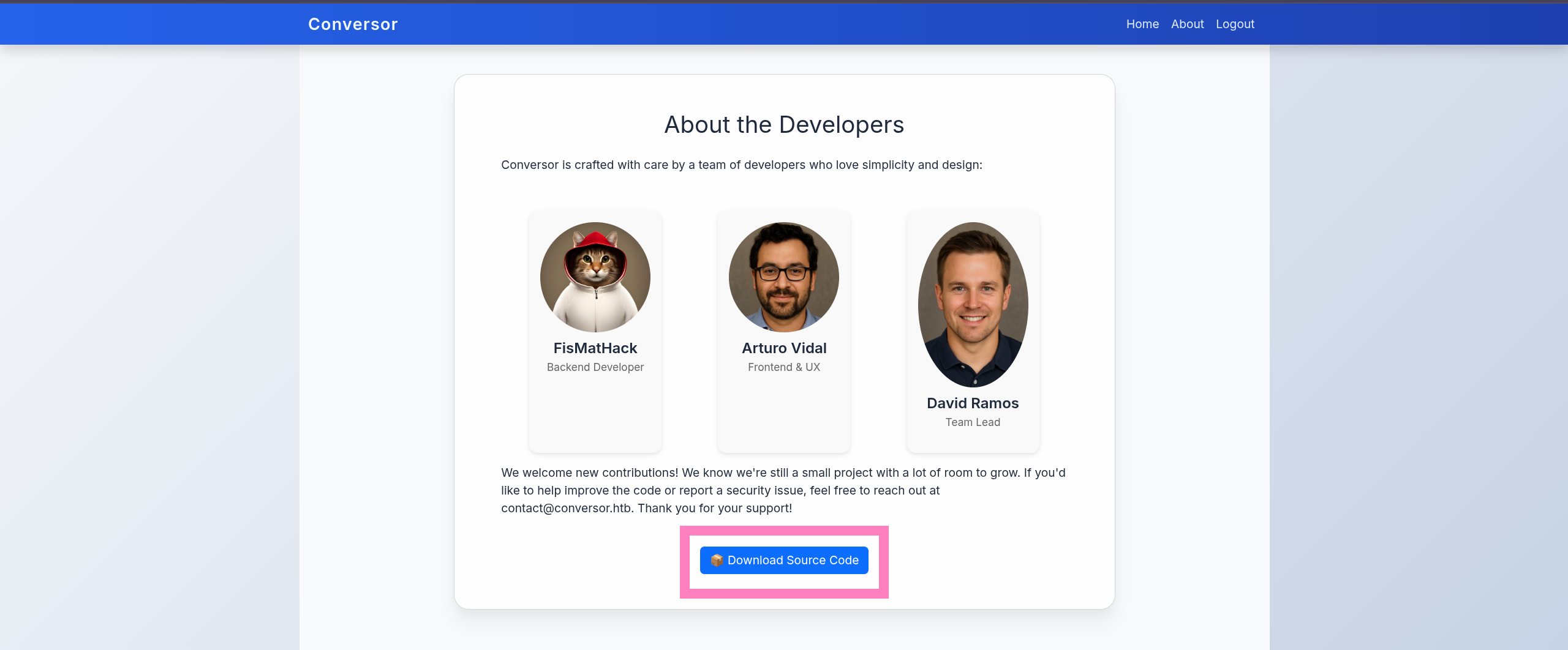 $ cat install.mdTo deploy Conversor, we can extract the compressed file:"""tar -xvf source_code.tar.gz"""We install flask:"""pip3 install flask"""We can run the app.py file:"""python3 app.py"""You can also run it with Apache using the app.wsgi file.If you want to run Python scripts (for example, our server deletes all files older than 60 minutes to avoid system overload), you can add the following line to your /etc/crontab."""* * * * * www-data for f in /var/www/conversor.htb/scripts/*.py; do python3 "$f"; done"""